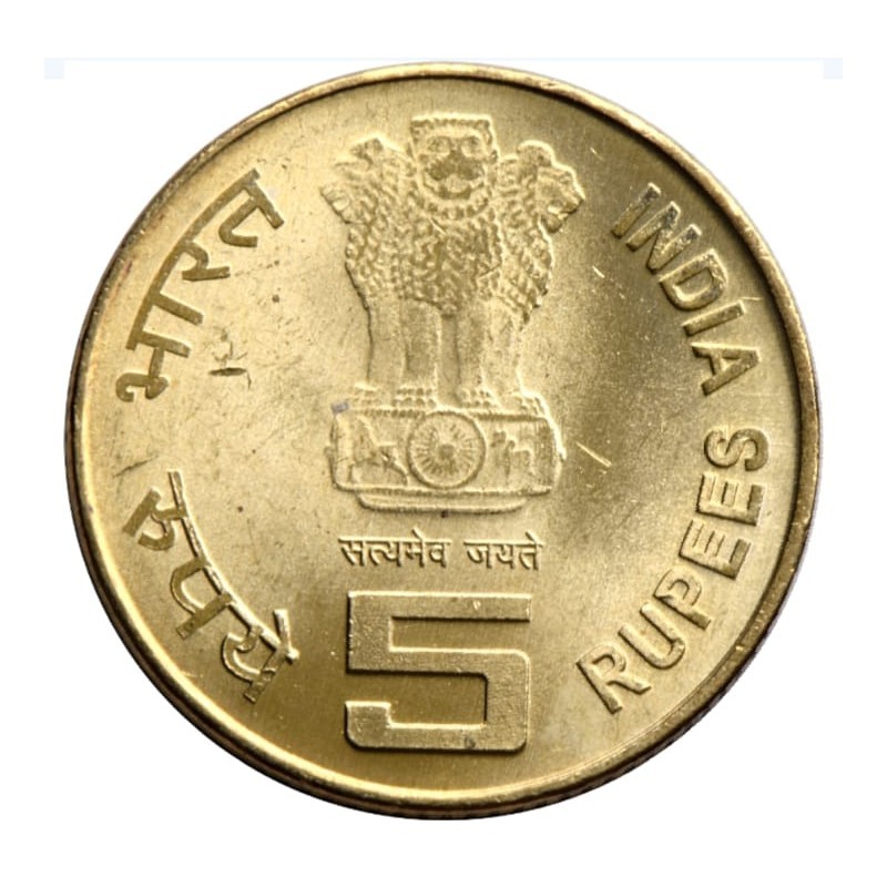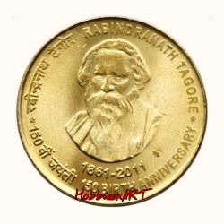 5 Rupees Gem BUNC coin of Rabindra Nath Tagore.