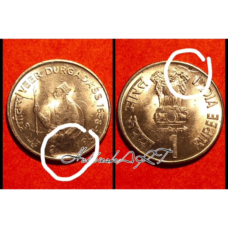 1 Rupee Very Rare Gem Unc BOTH SIDE Lamination Error Coin of Veer Durgadas with 1 Normal Coin.