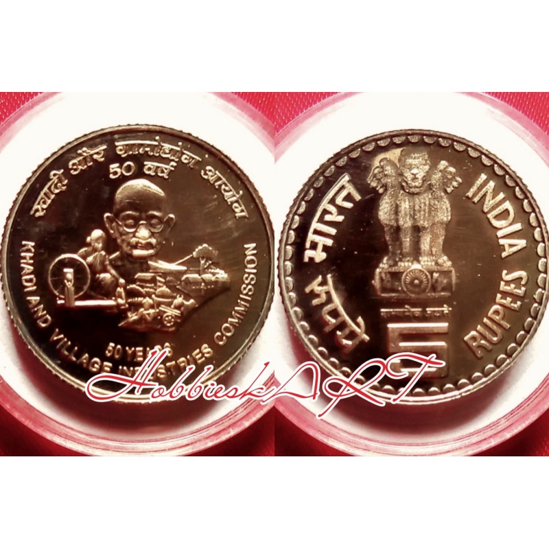 5 Rupees Rare Khadi and Village Copper Nickel Coin in Gem Unc Condition.