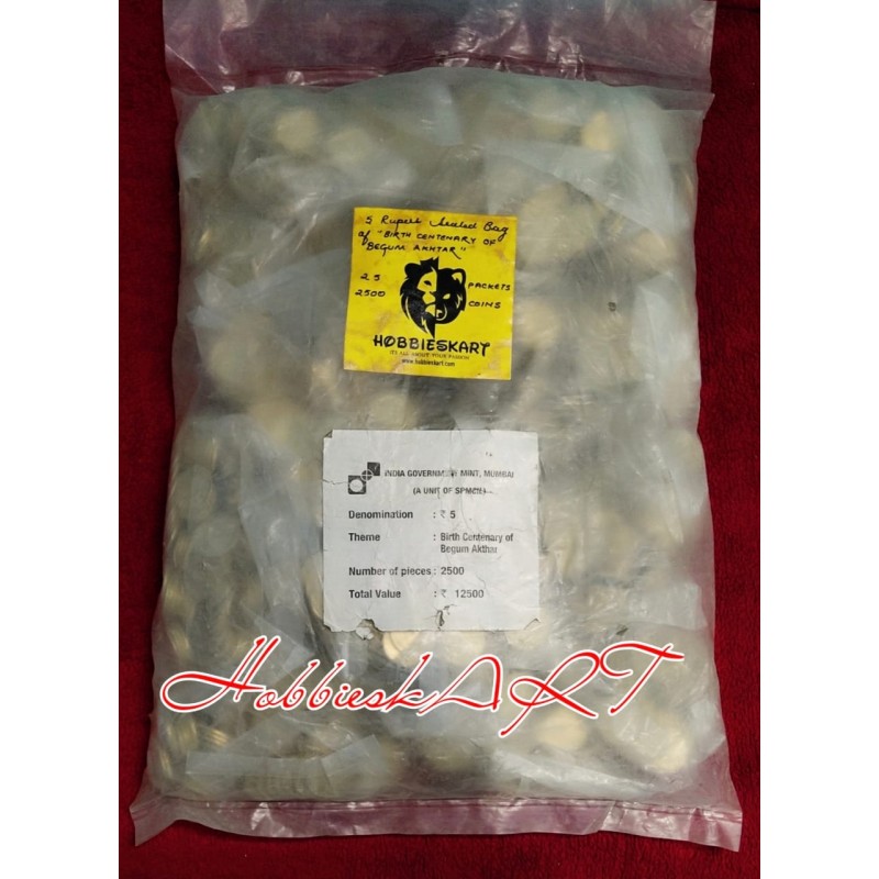 5 Rupees Sealed Bag of "Birth Centenary of Begum Akhtar" 25 Packets, 2500 Gem Unc Commemorative coins of Bombay Mint.