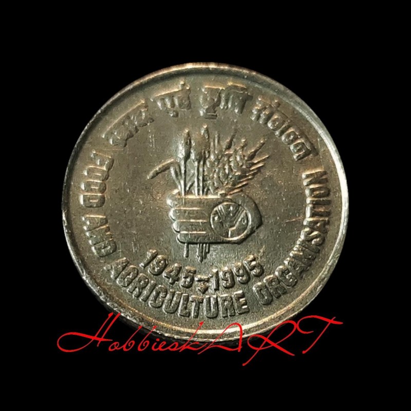 5 Rupee Rare Die Filled Error of Food and Agriculture Organization Coin.