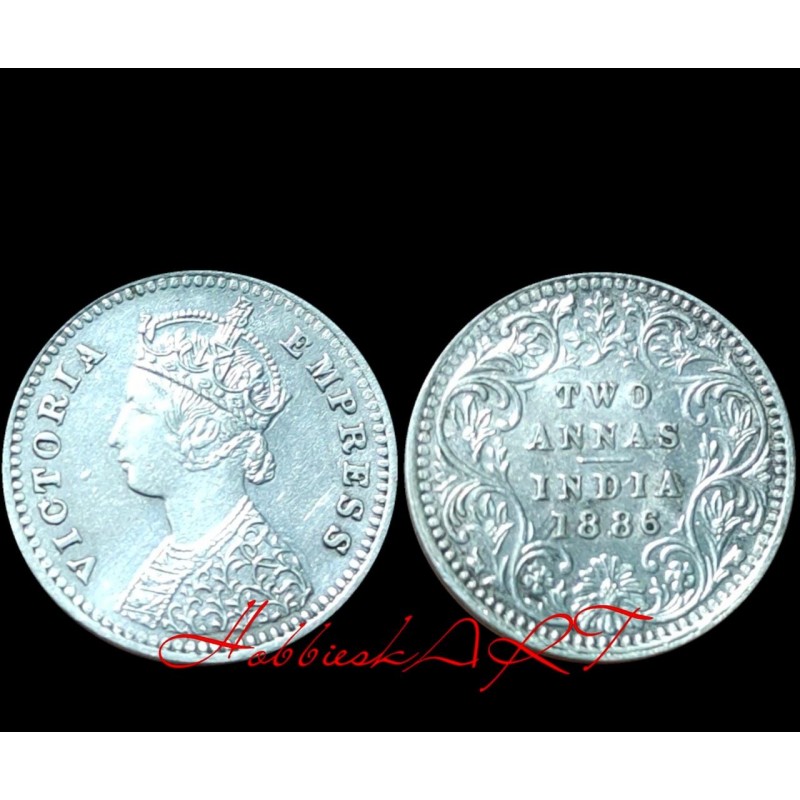 Victoria Empress 2 Anna's Rare Coin of 1886 in Very Good Condition.