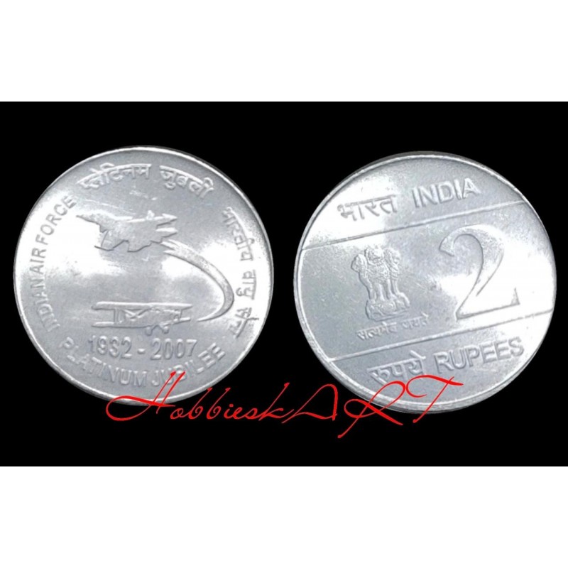 2 Rupees Rare Gem Unc Rare coin of Airforce Platinum Jubliee with free Gem UNC Assorted commemorative coin.