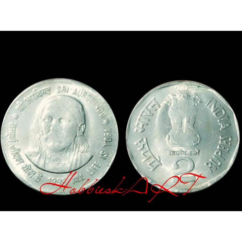 2 Rupee Rare "Sri Aurbindo" Die Filled Error Coin (Both Side) in Gem Unc Condition.