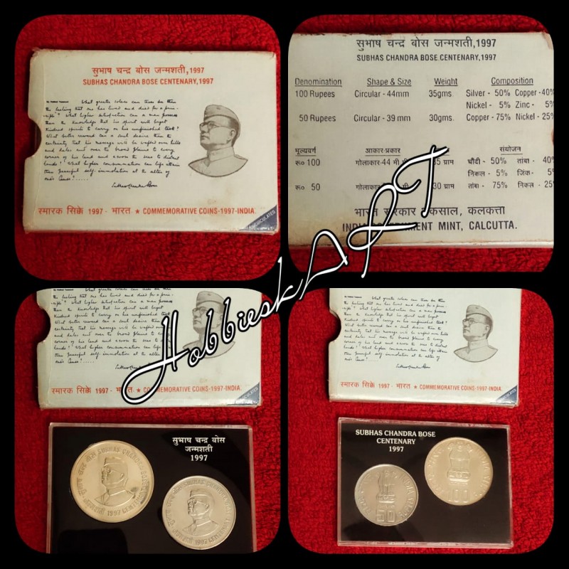 Extremely Rare 2 Coins set of.(50 and 100 Rupees) Subhas Chandra Bose Centenary issued in 1997.