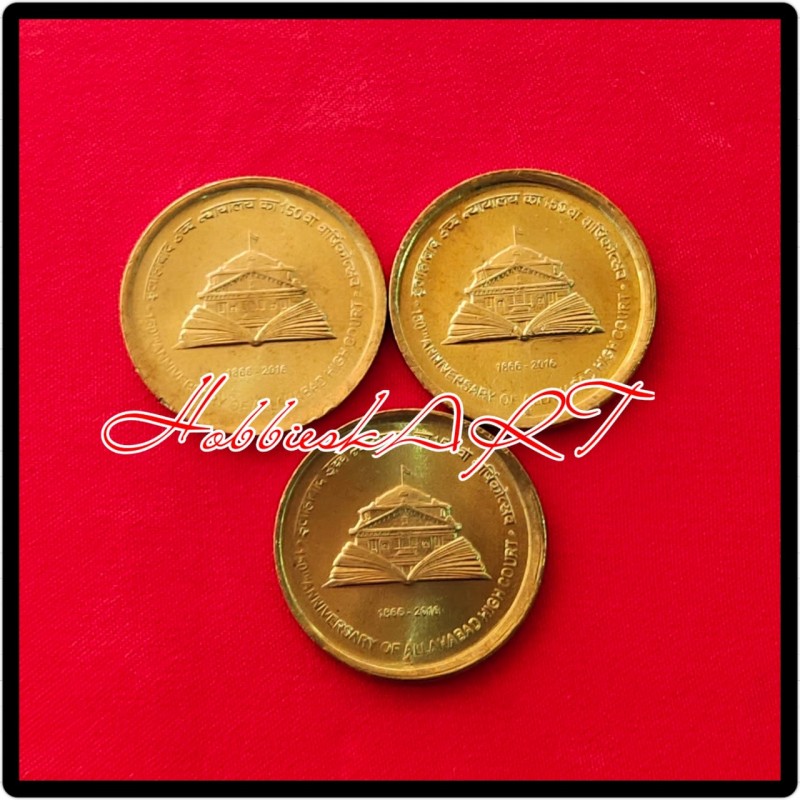 5 Rupees Very Rare Combo of Reeged Edge, Plain Edge and Off-center Error Gem Unc Coins of Allahabad HighCourt (H) Mint.