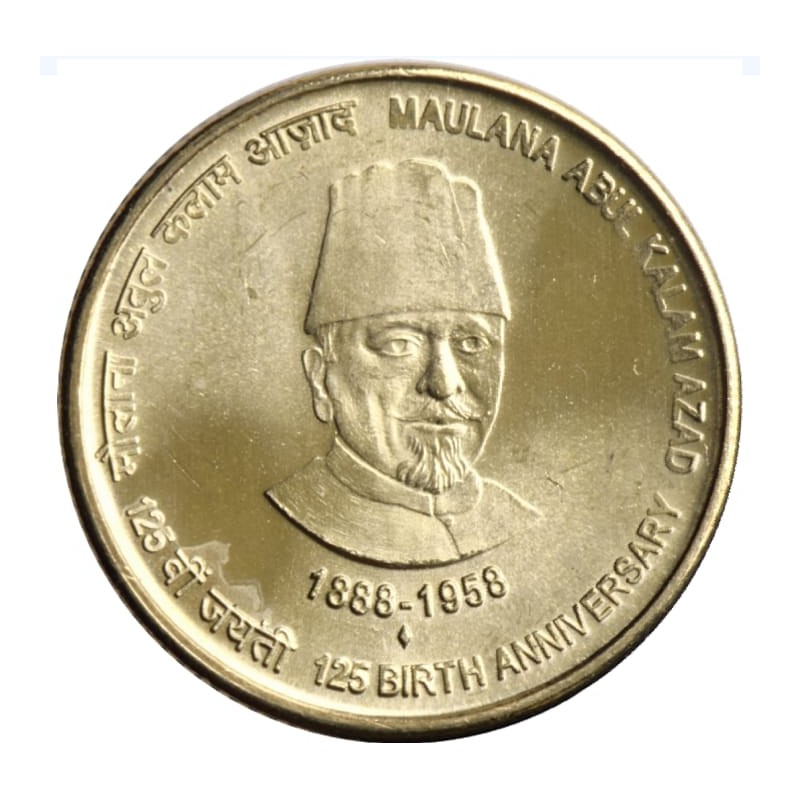 death. The coin has inscription "125th Birth Anniversary of Maulana Abdul Kalam Azad" in