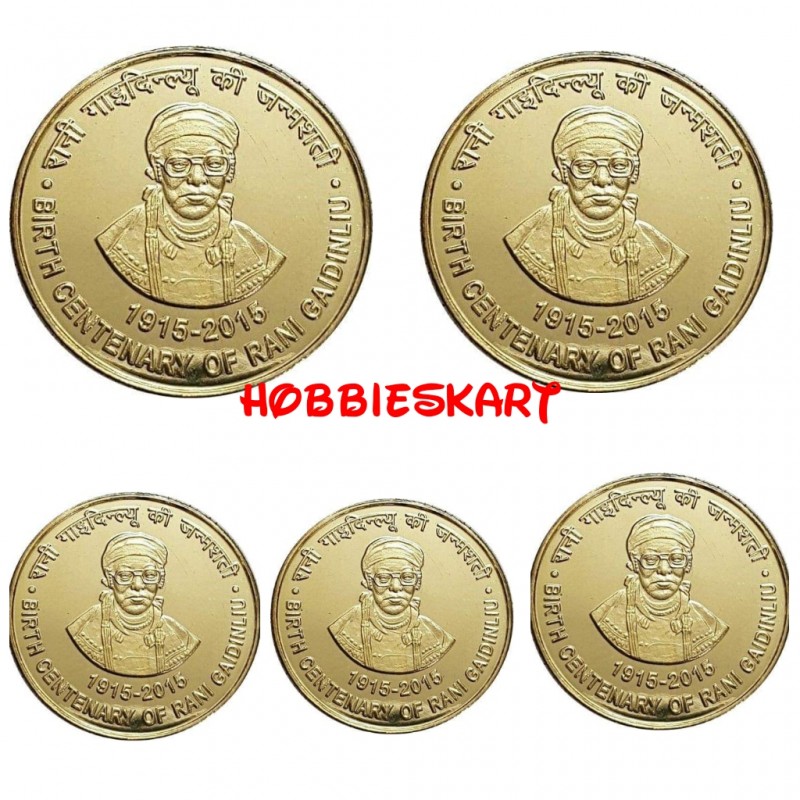 5 Rupees 5 Gem Unc coins of Rani Gaidnilu Hyderabad mint coins combo.