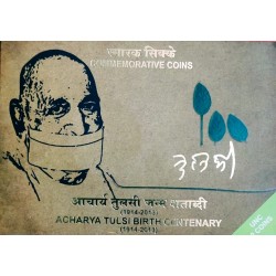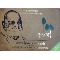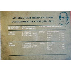 Acharya Tulsi Birth Centenary Unc set having 20 Rupees Silver coin and 5 Rupees Commemorative coin