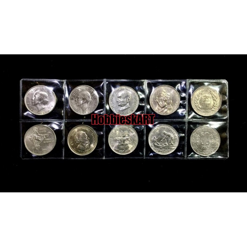50 Paise Gem Unc Rare Copper Nickel Commemorative Coins Set of 10 Coins.