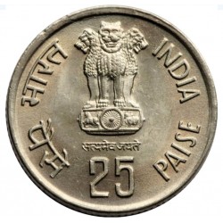 REVERSE: The reverse of this coin shows the Ashokan lion and the value ‘25’ on the center. In