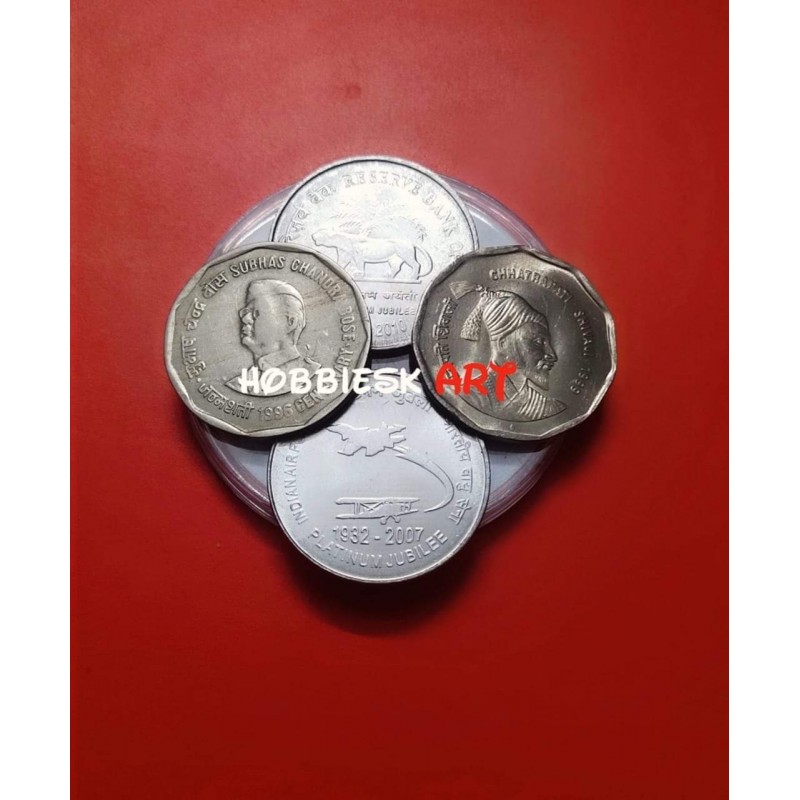 2 Rupees Combo of RARE Subhas Chandra Bose 1996, Chhatrapati Shivaji Maharaj, 2 Rupees Gem BUNC coin of Airforce platinum Jubliee and Reserve Bank of India at lowest Price Ever.