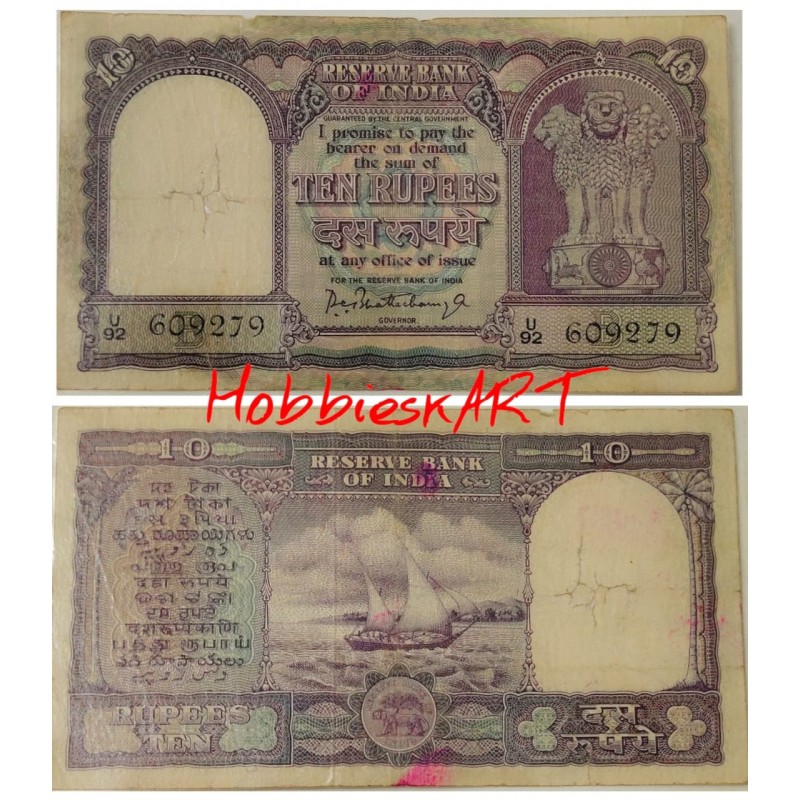 10 Rupees Rare fafda Banknote of P C Bhattacharya Governor.