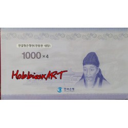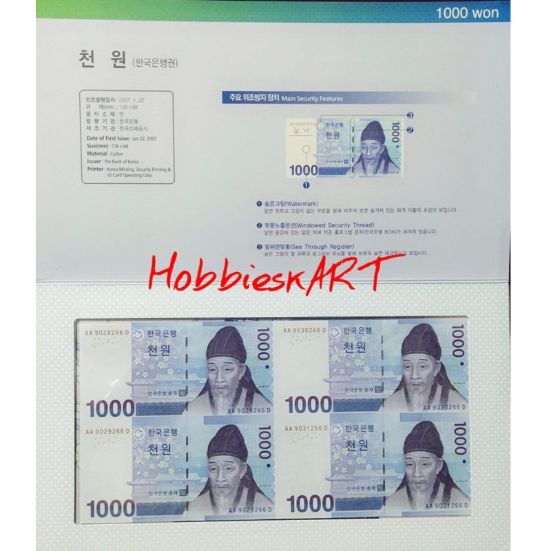 Extremely Rare 1000 Won Uncut Sheet with folder of Bank of Korea.