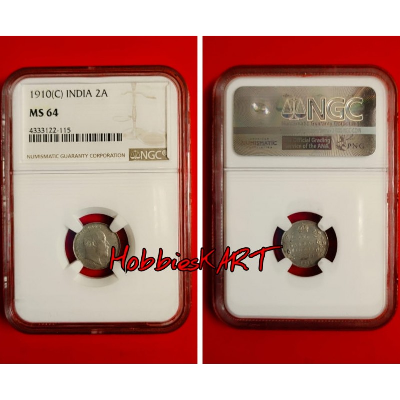Edward VII 2 Anna's 1910(C) Rare Silver coin MS-64 Graded.