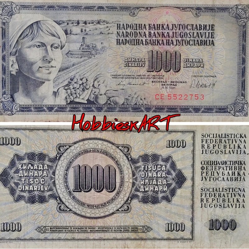 1000 Dinara Rare Banknote of former Yugoslavia issued in 1981.