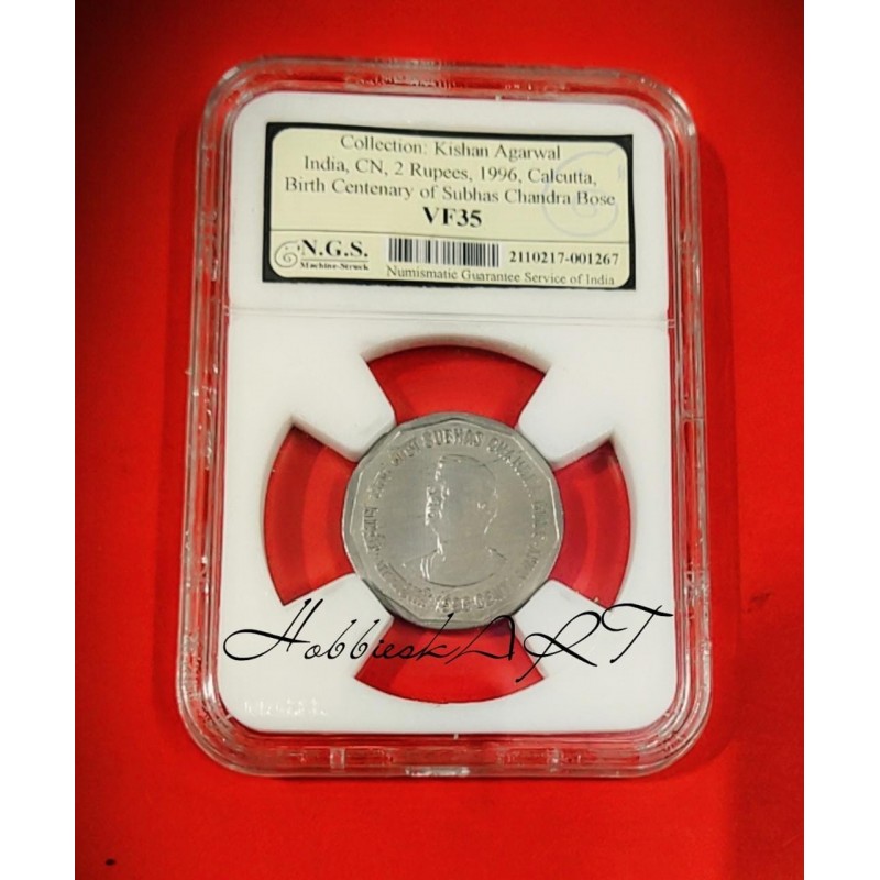 2 Rupees Very Rare Graded coin of Subhas Chandra Bose 1996 in Very Good Condition with Free Assorted Gem Unc coins.